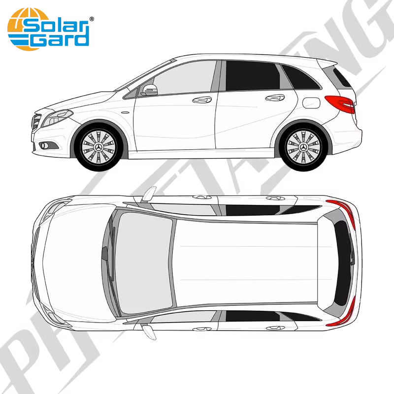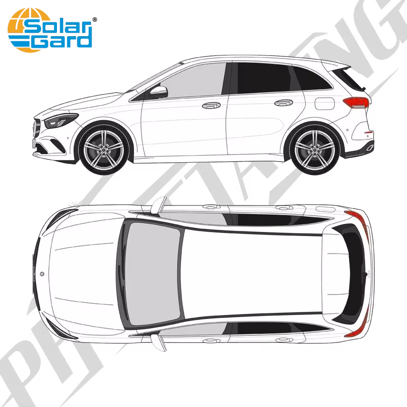 Färdigskuren solfilm till Mercedes-Benz B-Klass alla årsmodeller. Färdigskuren solfilm från Solargard. Samma film som proffsen använder!