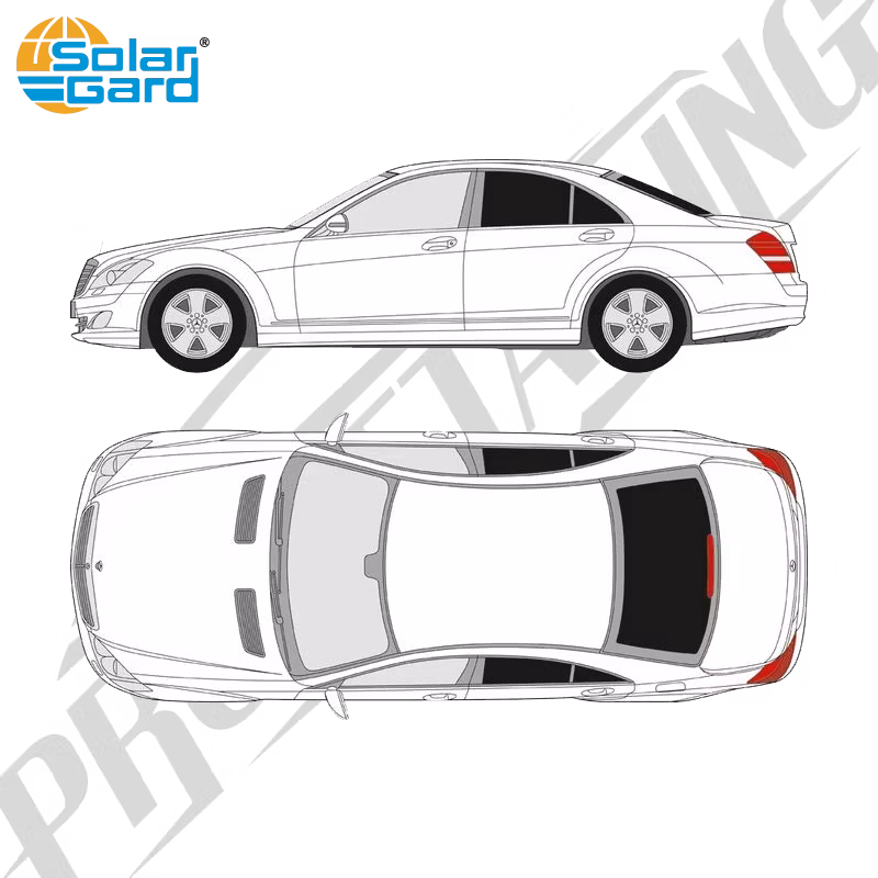 Färdigskuren solfilm till Mercedes-Benz S-Klass alla årsmodeller. Färdigskuren solfilm från Solargard. Samma film som proffsen använder!