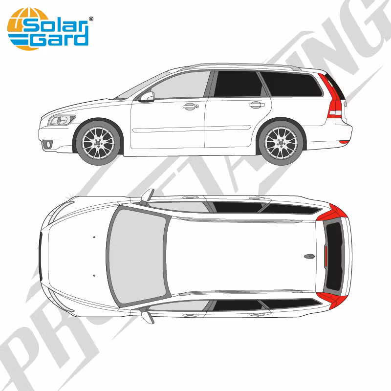 Färdigskuren solfilm till Volvo V50 alla årsmodeller. Färdigskuren solfilm från Solargard. Samma film som proffsen använder!