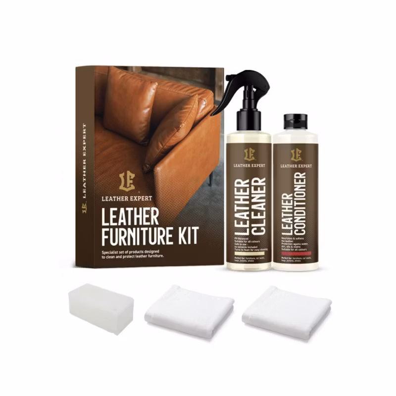 Komplett lädervårdskit från Läderexperten avsett för vård av möbler i läder för omedelbar användning. Kitet innehåller professionella och effektiva produkter så
