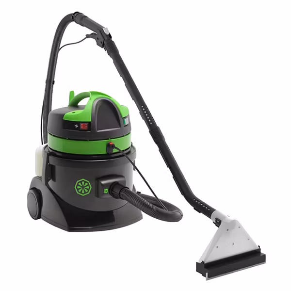 IPC GP1/16 är en flexibel och praktisk rengöringsmaskin som är lämplig för mindre arbetsuppgifter, för t.ex. hobbyrekondaren, kontoret eller hemmet. Den är perfekt för rengöring av mattor, möbler och bilsäten. GP1/16 har en inbyggd tryckpump för djuprengöring, precis som på större rengöringsmaskiner. Det här är den mest effektiva rengöringsmetoden för mattor och textilier. Levereras med en 2 meter lång sugslang Ø 32 mm och en tryckslang med snabbkoppling. Munstyckena och ventilhandtagen är av mycket god kvalitet. Tillverkad av svart och grön återvunnen plast. Utrustad med en 16 liters behållare samt en 3 liters yttre vattentank.