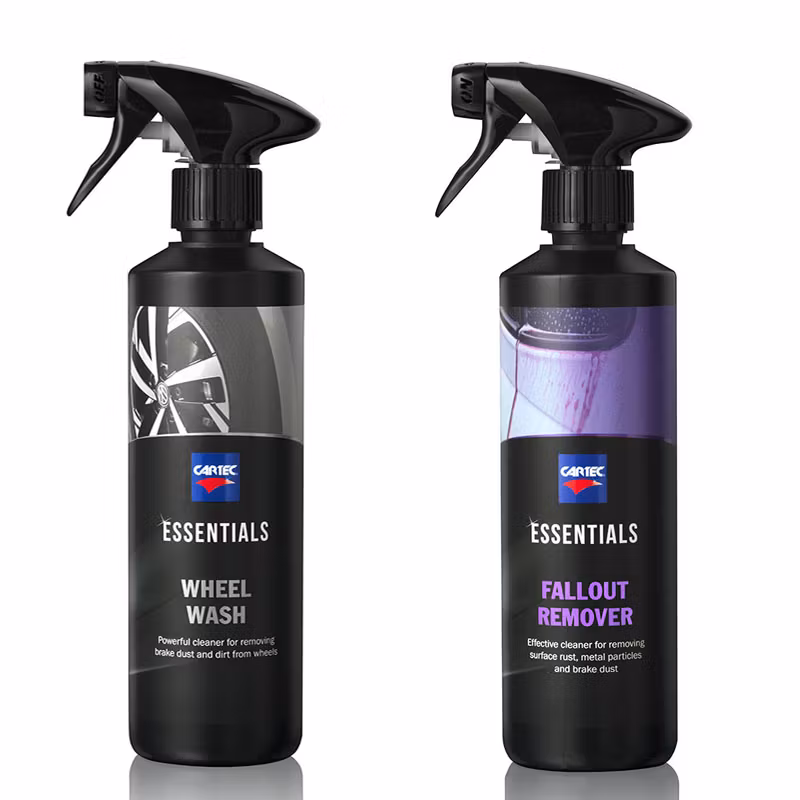 Fallout Remover är också tagen från Cartecs Essentials-serie och är en effektiv rengöringsprodukt för att ta bort flygrost, metallpartiklar och envist sittande bromsdamm från bilens lack, fälgar och rutor. Den aktiva formuleringen färgar föroreningarna lila, för att de ska vara lätta att se och ta bort. Vid användning på fälgar, skölj bort Fallout Remover innan den lila färgen blir brun. Fallout Remover har en egen karaktäristiskt lukt. Produkten är pH-neutral, vilket innebär att den i princip inte kan skada lacker, fälgar, navkapslar, krom och metaller.