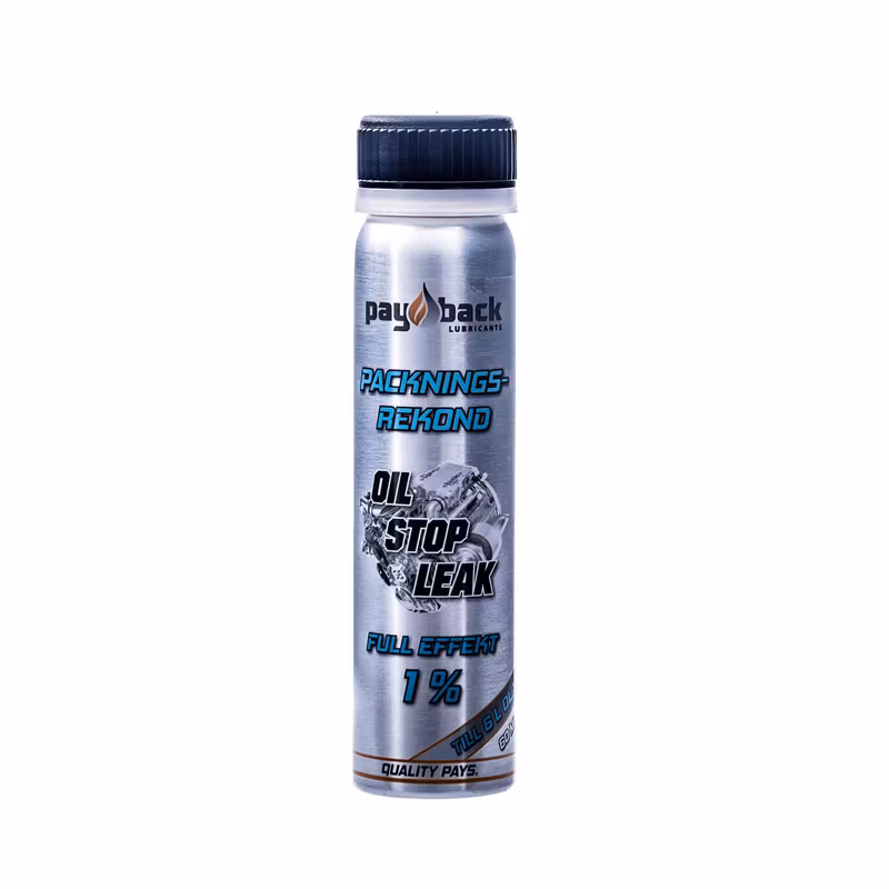 PACKNINGSREKOND från Payback tätar effektivt oljeläckage under drift i alla typer av oljesystem. Efter ca 1-7 dagar i ett oljesystem i bruk rekonditioneras, O-ringar och packboxar. De blir mjuka och elastiska igen samt expanderar och tätar igen.