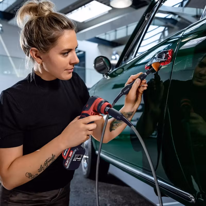 Med den flexibla axeln och polermaskinen PXE 80 10.8-EC får du ett innovativt system för spotrepair, för hörn och svåråtkomliga ställen som inte kan bearbetas m