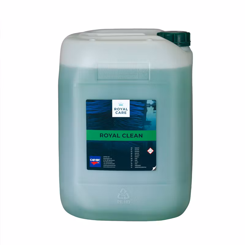 Royal Clean+ från Cartec är ett koncentrerat skummande borstschampo avsett för automatiska biltvättar. Produkten är biologiskt nedbrytningsbar. Framtagen framförallt för borsttvättar då produktens unika egenskaper håller borstarna rena och minskar risken för repor på lacken.